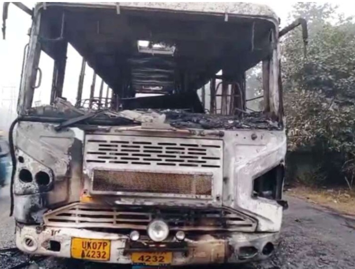 हादसा: उत्तराखंड रोडवेज की बस में लगी आग, बस में सवार सभी 15 यात्री सुरक्षित, फायर ब्रिगेड की टीम ने कड़ी मशक्कत के बाद आग पर काबू पाया