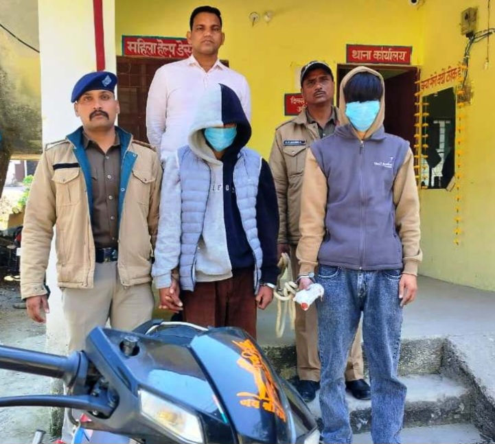 रंग की स्कूटी (यूकेO4 टीबी-3162, टीवीएस एन्टॉर्क) पर सवार दो व्यक्ति पुलिस टीम को देखकर भागने का प्रयास करते हुए पकड़े गए। संदेह होने पर स्कूटी की डिग्गी की तलाशी ली गई, जिसमें पन्नी सहित 202 ग्राम अवैध चरस बरामद की गई।