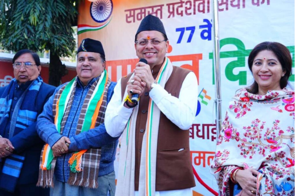 सीएम पुष्कर सिंह धामी ने मुख्यमंत्री आवास में राष्ट्रीय ध्वज फहराया, कहा विकसित भारत के निर्माण के लिए सबका योगदान जरूरी