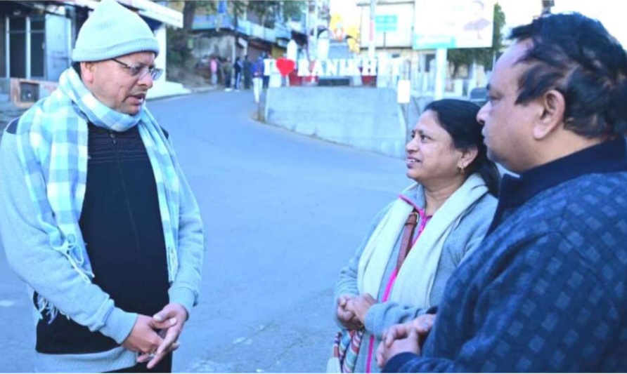 रानीखेत:- सीएम पुष्कर सिंह धामी मंगलवार को रानीखेत में मिश्रित वनों से घिरी माल रोड पर पैदल सैर करते हुए वह गांधी चौक पहुंचे और आम लोगों व सैलानियों से सीधा संवाद किया।