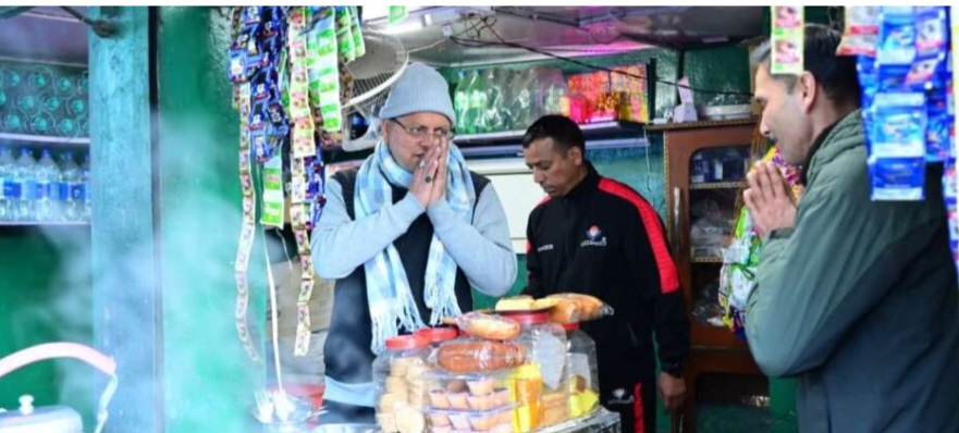 गांधी चौक पर मुख्यमंत्री अचानक पिलखोली निवासी राजेंद्र सिंह नेगी के चाय के स्टाल पर पहुंच गए।