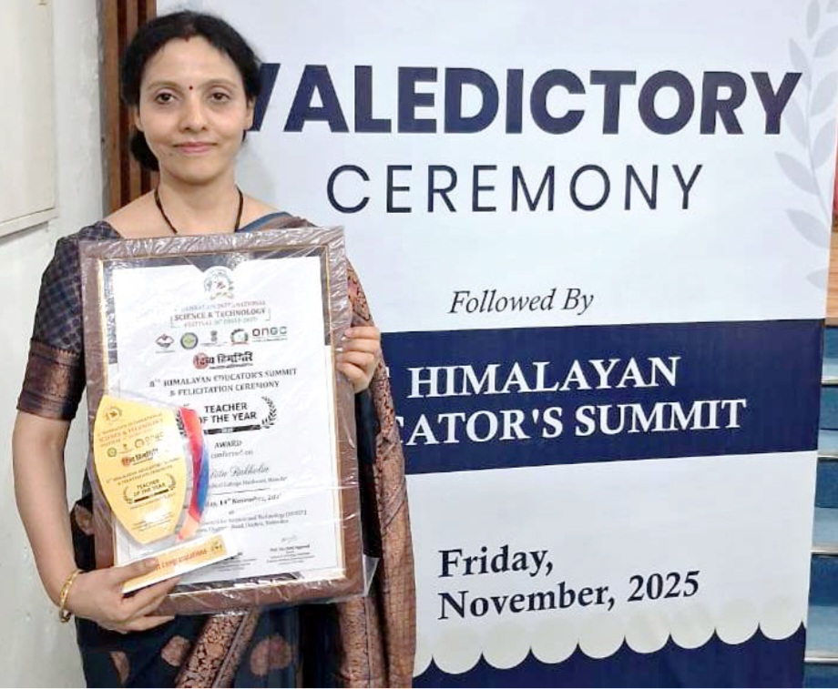 हल्द्वानी/ देहरादून:- साइंस एंड टेक्नोलॉजी फेस्टिवल-2025 में डॉ. ऋतु रखोलिया को ‘टीचर ऑफ द ईयर’ अवॉर्ड से सम्मानित किया गया। चिकित्सा शिक्षा और शोध के क्षेत्र में उनके उल्लेखनीय योगदान के लिए यह सम्मान प्रदान किया गया।