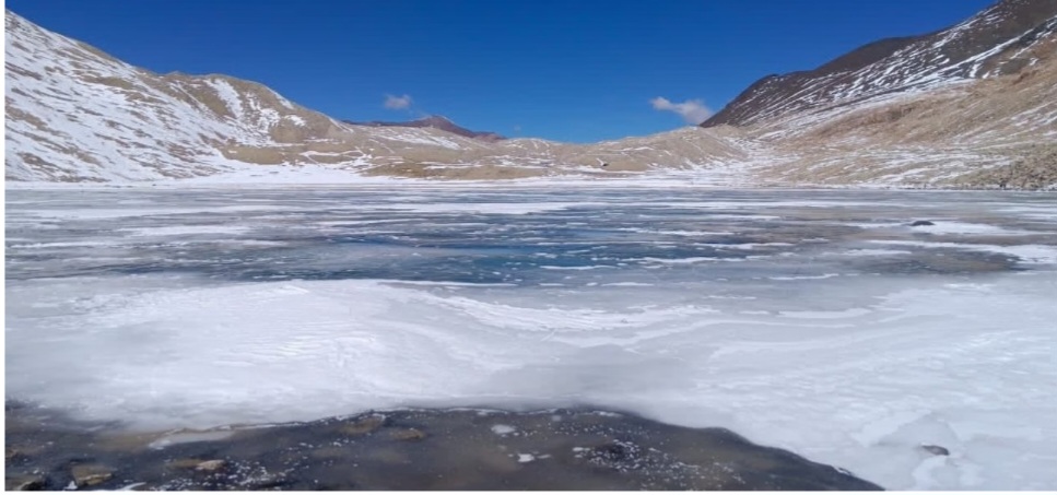 भारत चीन सीमा के करीब कड़ाके की ठंड के चलते देवताल झील जमीं, पानी बर्फ में हुआ तब्दील