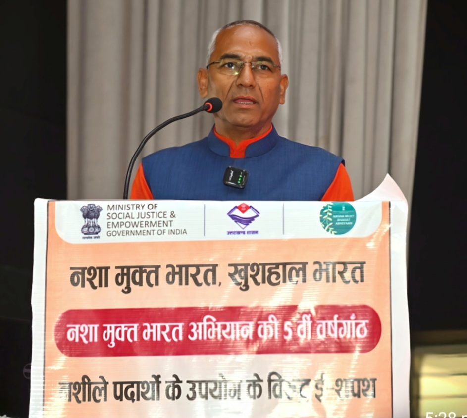 हल्द्वानी:- नशामुक्त भारत अभियान की 5वीं वर्षगांठ के अवसर पर आज मंगलवार को एमबी डिग्री कॉलेज, हल्द्वानी में जिला प्रशासन एवं समाज कल्याण विभाग के संयुक्त तत्वावधान में जन-जागरूकता कार्यक्रमों का आयोजन किया गया। इस अवसर पर छात्रों, जनप्रतिनिधियों, अधिकारियों एवं शिक्षकों ने नशे को जड़ से समाप्त करने का संकल्प लेते हुए सामूहिक शपथ ग्रहण की।