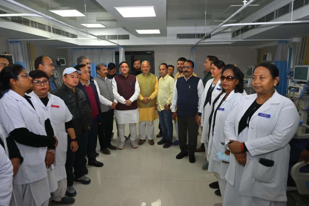 इस अवसर पर दर्जा राज्य मंत्री सुरेश भट्ट, भाजपा जिलाध्यक्ष प्रताप सिंह बिष्ट प्रमुख चिकित्सा अधीक्षक बेस चिकित्सालय सहित विभिन्न चिकित्सक, मेडिकल स्टाफ अन्य जनप्रतिनिधि उपस्थित रहे।