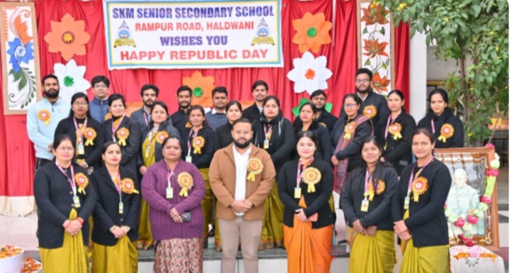 हल्द्वानी:- रामपुर रोड स्थित एसकेएम सीनियर सेकेंडरी स्कूल में 77वां गणतंत्र दिवस हर्षोल्लास के साथ मनाया गया। कार्यक्रम की शुरुआत प्रधानाचार्या मोनिका शर्मा, उप-प्रधानाचार्या भामिनी चौहान जोशी तथा प्रशासक ऋषभ जोशी ने ध्वजारोहण के साथ की। ध्वजारोहण के पश्चात राष्ट्रगान की गूंज से संपूर्ण विद्यालय परिसर देशभक्ति के रंग में रंग गया।