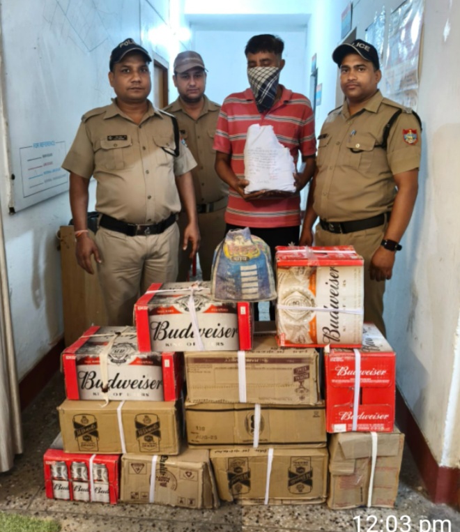 एसपी सिटी हल्द्वानी प्रकाश चंद्र, के मार्गदर्शन, क्षेत्राधिकारी नितिन लोहनी, के पर्यवेक्षण तथा प्रभारी निरीक्षक हल्द्वानी अमरचंद शर्मा, के नेतृत्व में एसओजी व हल्द्वानी पुलिस टीम द्वारा संयुक चैकिंग के दौरान 8 अक्टूबर को शाम के समय गन्ना सेंटर से आगे एक व्यक्ति नवीन कुमार सिंह को कुल 11 पेटी अवैध शराब के साथ गिरफ्तार किया गया।