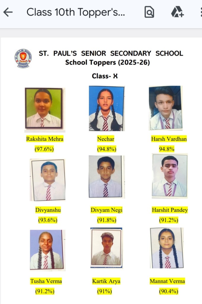 सेंट पॉल्स स्कूल के छात्रों का सीबीएसई हाई स्कूल परीक्षा में शानदार प्रदर्शन, 9 छात्रों ने 90% से ऊपर अंक लाकर स्कूल का नाम किया रोशन