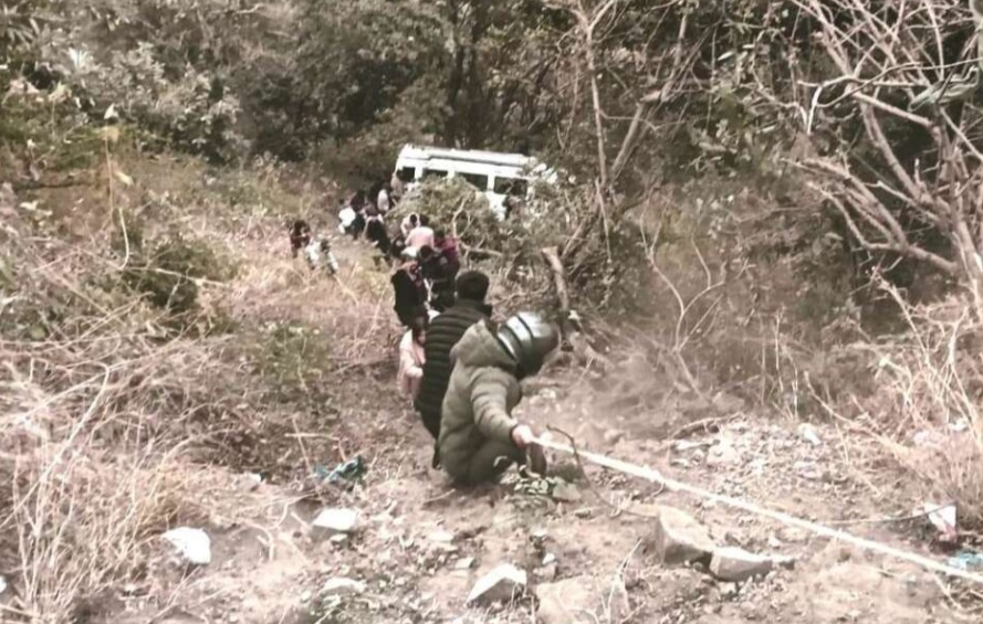 टेंपो ट्रैवलर अनियंत्रित होकर गहरी खाई में गिरा, 27 यात्री थे सवार, दो व्यस्क और 16 बच्चे घायल