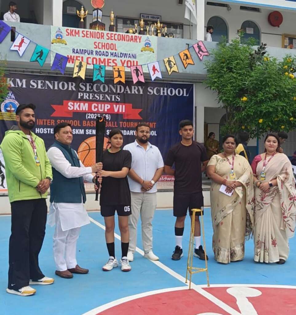 हल्द्वानी:- रामपुर रोड स्थित एस.के.एम. सीनियर सेकेंडरी स्कूल में तीन दिवसीय अंतरविद्यालय बास्केटबॉल चैंपियनशिप ‘एसकेएम कप-7’ का शुभारंभ बृहस्पतिवार को हुआ। कार्यक्रम का उद्घाटन मुख्य अतिथि हल्द्वानी-काठगोदाम के मेयर गजराज सिंह बिष्ट, विद्यालय की प्रधानाचार्या मोनिका शर्मा, उप-प्रधानाचार्या भामिनी चौहान जोशी तथा प्रशासक ऋषभ जोशी द्वारा दीप प्रज्वलन कर किया गया।