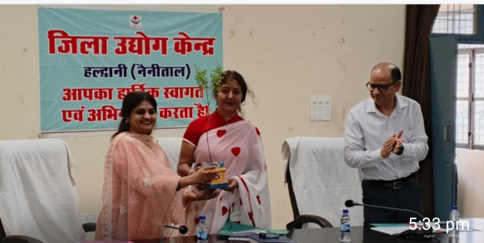 हल्द्वानी:- जिला उद्योग केन्द्र, हल्द्वानी में अध्यक्ष महिला उद्यमिता विकास परिषद उत्तराखंड रेनू अधिकारी द्वारा उद्योग विभाग के अधिकारियों के साथ समीक्षा बैठक की गई, जिसमें जनपद की महिलाओं के स्वरोजगार एवं ऑनलाइन मार्केटिंग, बाजार की उपलब्धता आदि, के विषय में चर्चा की गई।